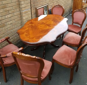 Victorian dining chairs and balloon back dining chairs (classic victorian look).